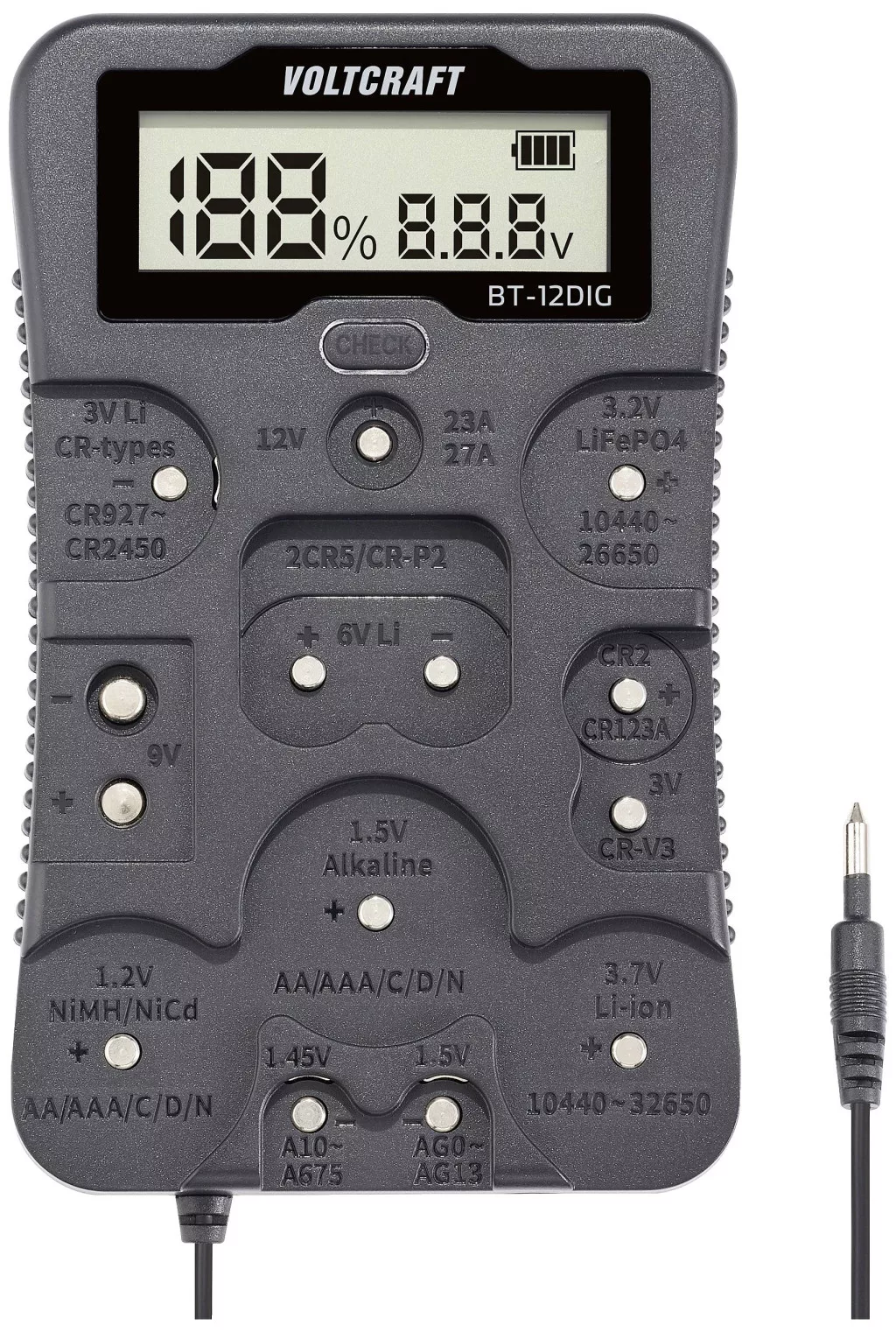VOLTCRAFT Elemteszter BT-12DIG Mérési tartomány (elemteszter) 1,2 V,1,5 V,3 V,3,7 V,6 V,9 V,12 V Elem,Akku VC-14340820
