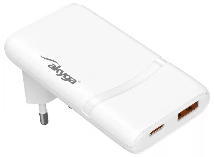 Az AK-CH-31 töltő USB-C PD porttal és klasszikus USB-A porttal van felszerelve, gyorstöltési képességgel, így két eszköz egyidejű töltését teszi lehetővé. Az USB-C port 5 és 20 V közötti feszültséget, valamint akár 65 W teljesítményt is támogat. Továbbá támogatja a PPS technológiát, amely lehetővé teszi a dinamikus teljesítményszabályozást kompatibilis eszközök, például Samsung okostelefonok vagy USB-C-vel rendelkező laptopok számára. Az USB-A port akár 27 W teljesítményt kínál, és biztosítja az eszközök gyors töltését – akár okostelefont, fejhallgatót vagy külső akkumulátort csatlakoztatsz hozzá.