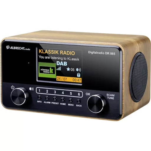 Az Albrecht Audio DAB + és a DR 865 Senior FM rádiója elegáns retro kinézetének köszönhetően abszolút figyelemfelkeltő is! A digitális rádió lekerekített, modern, fából készült háza nemcsak vizuálisan, de különösen terjedelmes és erőteljes hangzásával is lenyűgöz.