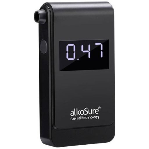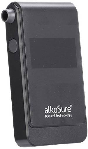 alkoSure Alkoholteszter Fekete (matt) 0.00 - 4.00 ‰ Kijelzővel,Különböző mértékegységek megjeleníthetők