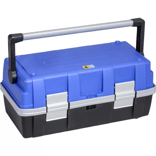 Jellemzők: 2 konzolos tálca és 2 belső kis alkatrész választék doboz · Stabil alumínium feszítő konzol zárak · Ergonomikus alumínium fogantyú a biztonságos hordozáshoz · Normál lakattal zárható.