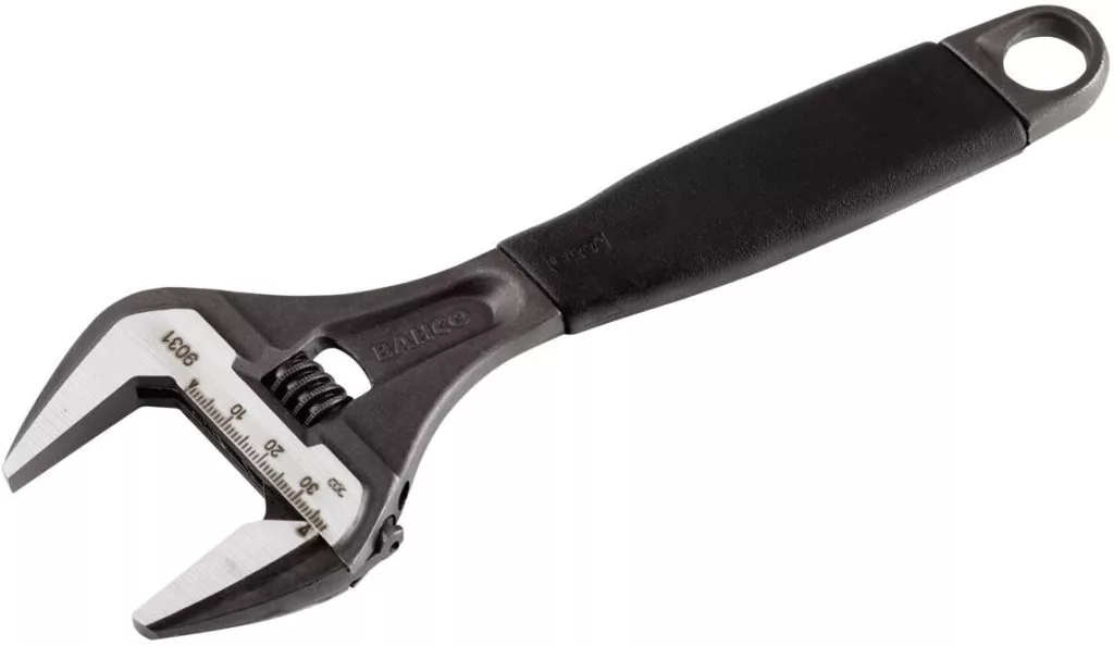 Az ERGO ™ folyamat részeként kifejlesztett villáskulcs. Speciális állítható villáskulcs extra nagy nyílásszélességgel. ISO 6787, DIN 3117, ASME B107.8M-2003 és BS 6333. Nagy teljesítményű acél ötvözet. Kényelmes, csúszásmentes markolat, termoplasztikus anyagból. Az előbeállításhoz és pontos méréshez alkalmas mm skála. A pofa teljes kinyitáskor sem esik ki. Nagyobb nyitási szélesség mint a hagyományos állítható villáskulcsoknál és kisebb súly, ugyanakkora markolat hossz mellett. A fej egyesíti a karcsúságot és a terhelhetőséget a jó hozzáférés érdekében. Ideális vízvezeték szerelők és más olyan kisiparosok számára, akik magukkal hordják a szerszámjaikat. Balra csavarodó csavarok. Barnított, precíziósan edzett és rozsdavédelemmel ellátva.