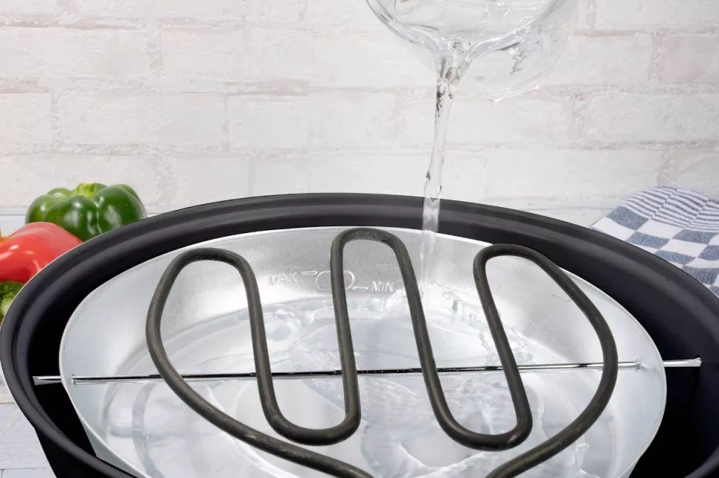 Szeretsz grillezni, de nagyobb kényelemre vágysz? Ezt az Alpina elektromos grillsütőjét sík, hőálló felületre, például asztalra helyezi. Ez a grillezést is sokkal szórakoztatóbbá teszi, mert mindenki a grill körül ülhet. A fekete, 3 láb magas grillrács szép és kompakt a 30 cm átmérőjével. Az elektromos grill nagyon egyszerűen működik: dugd be, töltsd fel az alját egy réteg vízzel, és hagyd egy ideig előmelegíteni a grillt. Körülbelül 5 perc elteltével a grill használatra kész. A vízréteg hűti a grillt, megakadályozza a füstöt és megkönnyíti a tisztítást. Az indikátorok a vízszintet mutatják. Mivel ez az asztali grill nem termel füstöt, grillezhet bent is. Ez különlegessé teszi a grillezést az étkezőben vagy a konyhában az asztalnál, hasonlóan a grilltányérhoz. Így egész évben élvezheti ezt a grillsütőt. Grillezés után hagyja kihűlni a készüléket. Ezután leveheti a rácsot az alapról, hogy meleg szappanos vízzel könnyen megtisztítsa.