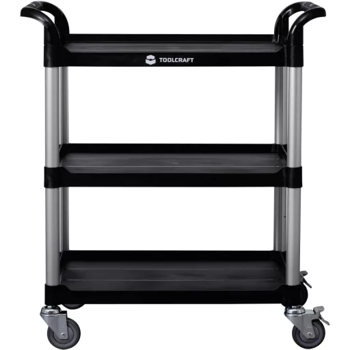Műszaki adatok: Anyag: Alumínium,Műanyag · Méret, magasság: 900 mm · Méret, szélesség: 850 mm · Rekeszek száma: 0 · Szín: Alumínium (natúr),Fekete · Súly: 11.5 kg · Tartalom: 1 db · Terhelés (max.): 50 kg · Termék típus: Szervizkocsi · További műszaki adatok: Terhelhetőség egy padlón: 50 kg · Teljes terhelhetőség: 150 kg.