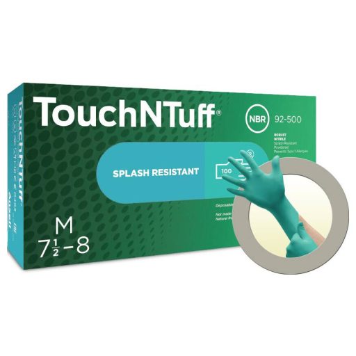 A púderezett TouchNTuff® 92-500 egy kényelmes, de tartós nitril kesztyű, amely megkönnyíti a felöltést és felszívja a nedvességet. Lágy, szabadalmaztatott Ansell készítményből készült, kiváló fröccsenésvédelmet nyújt számos veszélyes vegyi anyag ellen.