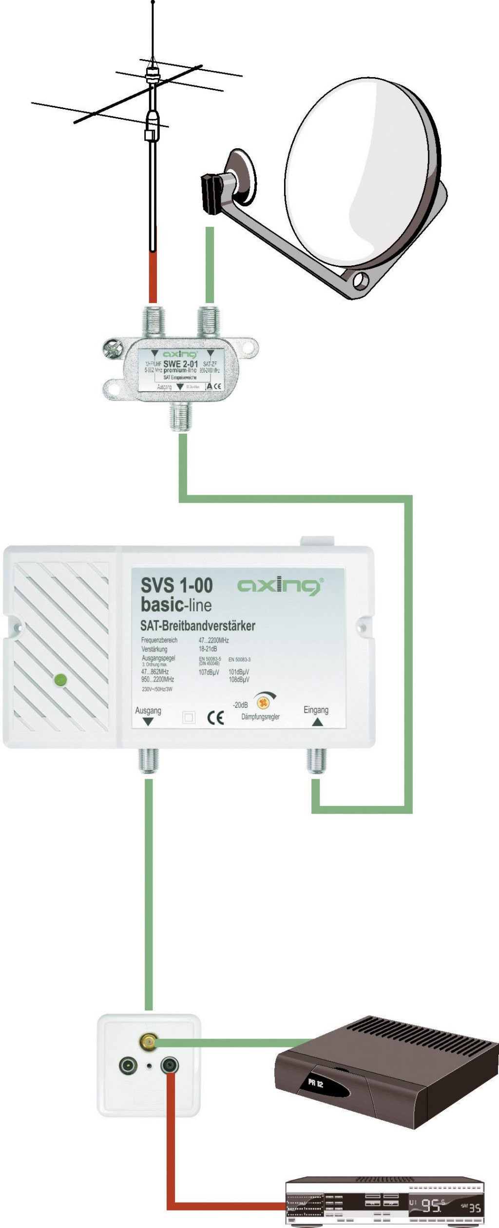 Axing SAT szélessávú erősítő, SVS 1-00
