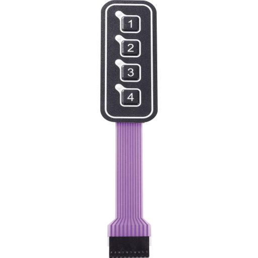 Műszaki adatok: Billentyűzet mátrix: 1 x 4 · Felirat/motívum: 1/2/3/4 · Gyártói szám: AC3559ILL · Méret, hossz: 95 mm · Méret, szélesség: 38 mm · Névleges feszültség: 30 V · Tartalom: 1 db · Típus: Fóliabillentyűzet · Világítás típus: Nincs