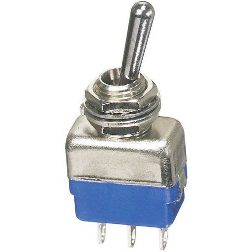 Műszaki adatok: Beépítési átmérő: 6 mm · Csatlakozó: Forrfülek · Funkciók (kapcsoló/nyomógomb): Reteszelő/0/reteszelő · Gyártói szám: 12149A · Ház/gomb szín: Fémes · Hőmérséklet (max.): +85 °C · Hőmérséklet (min.): -40 °C · Kapcsolási feszültség: 250 V/AC · Kapcsolási állások: 2 x BE/KI/BE · Kapcsoló/nyomógomb jellemzők: fém kar · Max. kapcsolási áram: 2 A · Pólusszám: 2 · Tartalom: 1 db · Típus: Karos billenőkapcsoló · Világítás típus: Nincs · Védelmi típus: IP54 · Érintkezőanyag: ezüst (Ag)