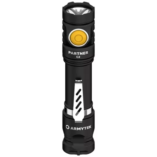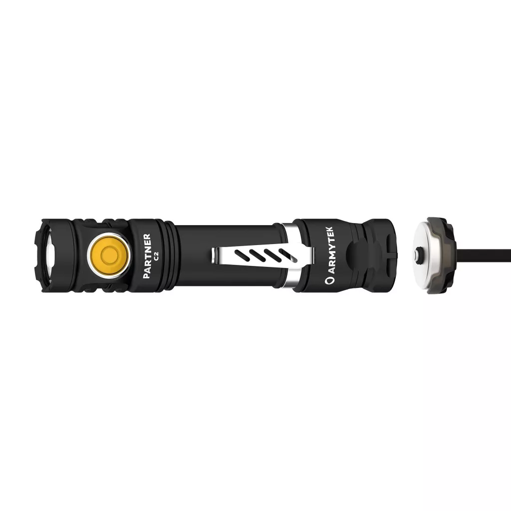 Zseblámpa mindennapi használatra taktikai használatra Egy zseblámpa mindennapi használatra és egy kompakt taktikai zseblámpa. A Partner C2 a sorozat alapmodellje, amelyet mindennapi használatra és speciális feladatokra is fejlesztettek. Univerzális segítőként a ház körül, kirándulások alkalmával vagy horgászat közben a Partner C2 helyettesítheti a nagyobb taktikai modelleket vadászatkor vagy egy megfigyelendő objektum körzetében. A klasszikus kialakítású ház két vezérlőgombbal rendelkezik: a lapos taktikai vezérlőgomb segítségével a lámpa gyors be- és kikapcsolását a taktikai kezelés során, a nagy íves vezérlőgomb pedig az üzemmódváltást teszi lehetővé. Az Armytek taktikai sorozatú modelljéhez hasonlóan a Partner C2 is állandó és pillanatnyi bekapcsolást kínál (amikor a taktikai gombot félig lenyomja). A zseblámpa nejlon tokkal, acél klipsszel és paracord kézszíjjal rendelkezik, amely biztosítja, hogy a zseblámpa könnyen rögzíthető legyen az övre, ruházatára vagy felszerelésére. A zseblámpa kompatibilis az opcionális kiegészítőkkel: hordó alatti rögzítőkkel és színszűrőkkel. A Partner C2 az Armytek felhasználásra kész, csúcstechnológiás terméke. A lámpa mágneses gyorstöltéssel és 18650 Li-Ion 3200 mAh akkumulátorral érkezik.