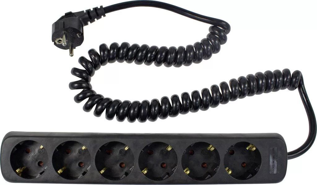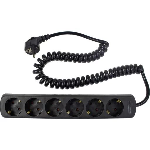 6-szoros foglalatcsík 2,5 m-es spirálkábellel.