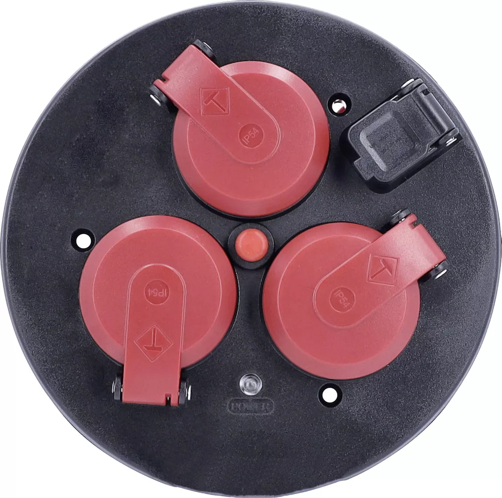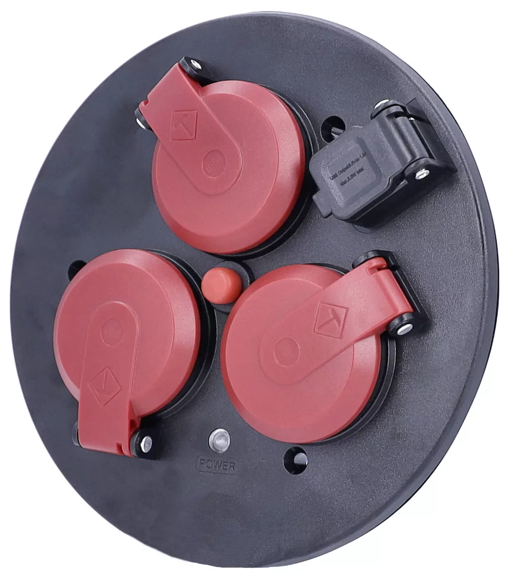 3 beépített aljzattal (230V/16A) piros csuklós fedéllel, különféle alkalmazásokhoz.