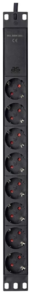 Műszaki adatok: Alkalmazás helye: Beltér · Csatlakozási teljesítmény: 3500 W · Dugaljak száma: 8 · Gyártói szín: Fekete · Hálózati csatlakozó típus: Védőérintkezős · Kábel típus DIN/VDE szerint: H05VV-F 3G 1,5 mm² · Kábelhossz: 3 m · Méret, hossz: 483 mm · Méret, magasság: 47 mm · Méret, szélesség: 45 mm · Szerelési mód: Állványos · Védelmi típus: IP20 · Üzemi feszültség: 230 V