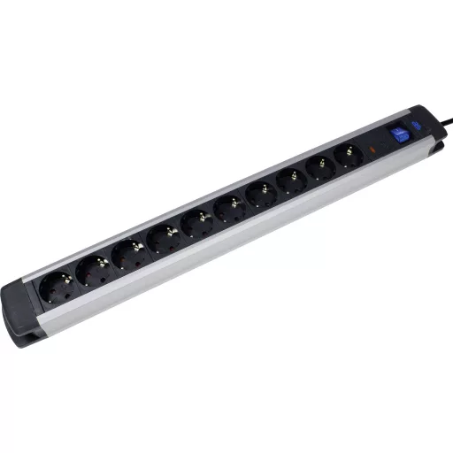 Műszaki adatok: Alkalmazás helye: Beltér · Csatlakozási teljesítmény: 3500 W · Dugaljak száma: 10 · Gyártói szín: Fekete, Ezüst · Hálózati csatlakozó típus: Védőérintkezős · Hálózati elosztó jellemzők: Gyermekvédelem, Túlfeszültség elleni védelem, Kapcsolóval · Kábel típus DIN/VDE szerint: H05VV-F 3G 1,5 mm² · Kábelhossz: 1.50 m · További műszaki adatok: 3. típusú SPD, Uc: 250V