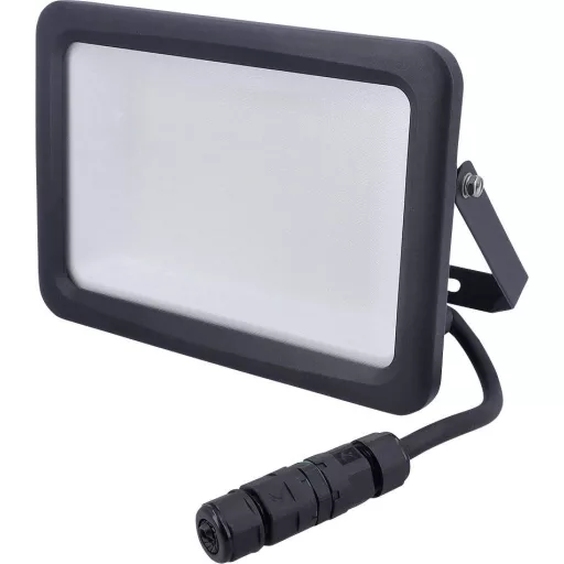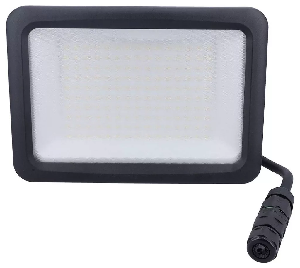 A 100 W-os Optiline LED-es reflektor körülbelül 12 000 lumen fényáramot biztosít semleges fehér fényszín (4000 K) mellett. Kültéri használatra optimalizálva: IP65-ös védettséggel, robusztus házzal, alumínium hőelvezető és nyomáskiegyenlítő elemmel. Gyorscsatlakozós adaptert és cserélhető LED-panelt tartalmaz – ideális építkezésekre, műhelyekbe és iparba.