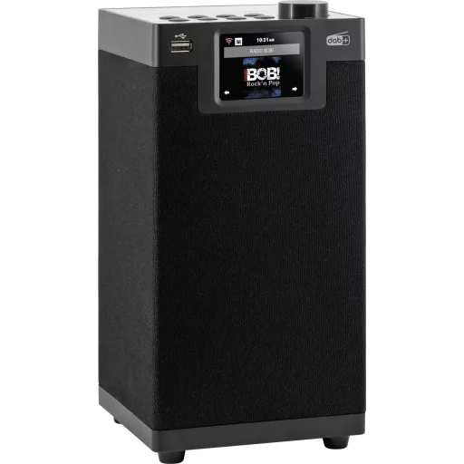 Műszaki adatok: Bemeneti csatlakozók: USB 2.0,LAN (10/100 MBit/s),Audio, sztereo (3.5 mm jack) · Funkciók (HiFi): Bluetooth®,WLAN · Gyártói szín: Fekete · HiFi jellemzők: DLNA-ra alkalmas · Kimeneti csatlakozók (számítástechnika/multimédia): Fejhallgató (3.5 mm jack),RCA (sztereo) · Méret, magasság: 305 mm · Méret, mélység: 150 mm · Méret, szélesség: 150 mm · Rádió tuner: DAB+,DAB,Internet,URH · Súly: 2.1 kg · Támogatott lejátszási formátum: MP3,WMA · Tápellátás: Tápegység (vele szállítjuk) · Vezeték nélküli töltő funkció: Nem