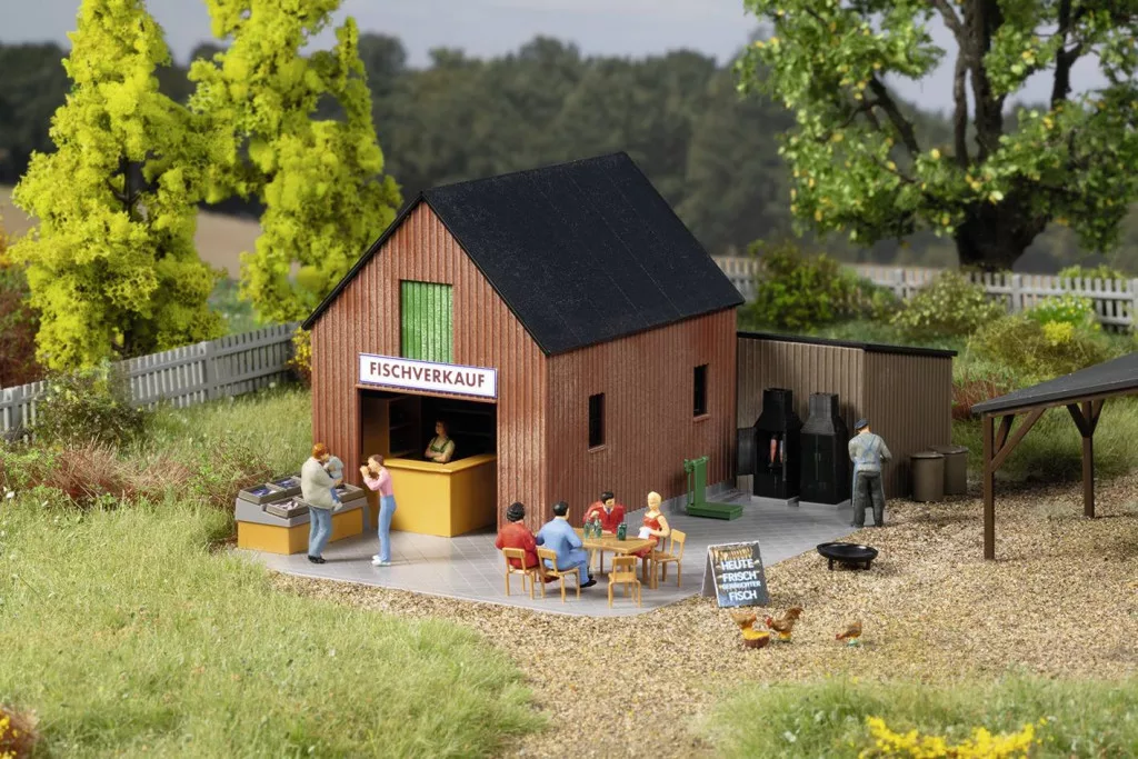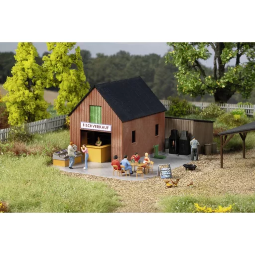 Egy kisebb, faburkolatú melléképületben, kibővítéssel halárusítás található, a 11 474 és 11 476 tételekhez illően. A pulttal, polcokkal, vitrinekkel és mérleggel felszerelt árusítóhely a két füstölő kemencének köszönhetően helyszíni kóstolót is kínál. Erre a célra ülőhelyek állnak rendelkezésre. További dekorációk, köztük egyéb eladó áruk, tűztál és szemetes edények teszik teljessé a készletet.