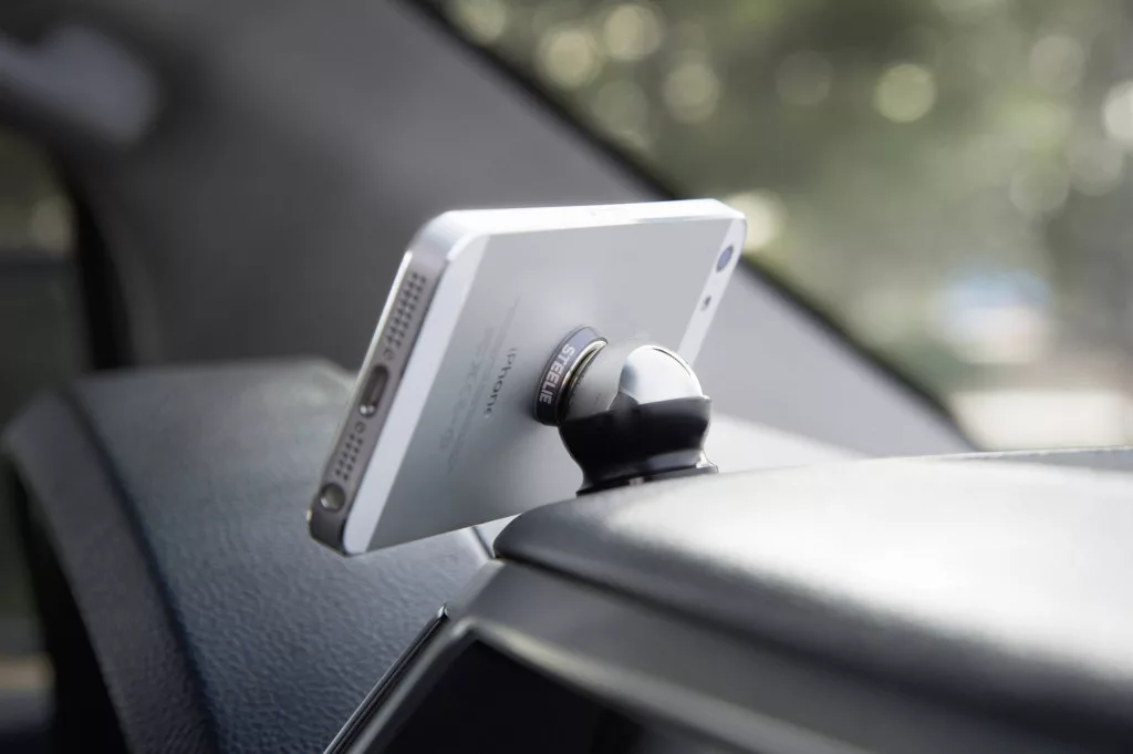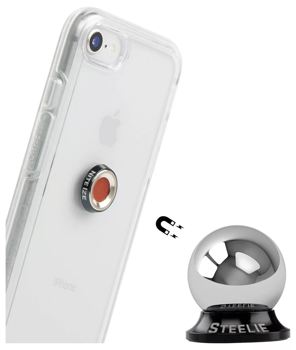 Az acél autós tartó készletet a műszerfalra vagy más felületre lehet rögzíteni és két speciálisan kialakított elemből áll: a mágneses gyűrű foglalatból és a gömbcsuklóból. Mindkettő acélból van és egy a gyűrűs foglalatban található nagy teljesítményű mágnes segítségével csatlakoznak egymásra helyezve biztonságosan egymáshoz. Együtt egy stabil és egyben rugalmas okostelefon tartót alkotnak. A gömbcsukló segítségével a telefon bármilyen tetszőleges dőlésszögbe állítható be. A mágneses gyűrű belsejében egy gumi lap van, ami rögzíti az okostelefon irányának beállítását, így rázkódás miatt sem változtat a helyzetén. A rendkívül biztos tartásról egy extra erős öntapadó lap gondoskodik, amely segítségével a mágneses gyűrű az okostelefonra (vagy védőtokra) vagy a gömbcsukló a sima műszelfalra rögzíthető. Az öntapadó lap maradvány nélkül eltávolítható. Praktikus további előny: Miután elértük úticélunkat és a telefont kivettük a Steelie Car Mount tartóból, a mágneses gyűrű bármilyen tetszőleges fémes felületen is működik. A telefon így pl. kényelmesen a hűtőszekrény ajtajára, fém polcra, bevásárlókocsira és számos más helyre rögzíthető. A mágnes nincs negatív hatással az okostelefon vagy tablet működésére. Ezek a készülékek nem mágneses tárolóeszközzel rendelkeznek, így azok nem befolyásolhatók.