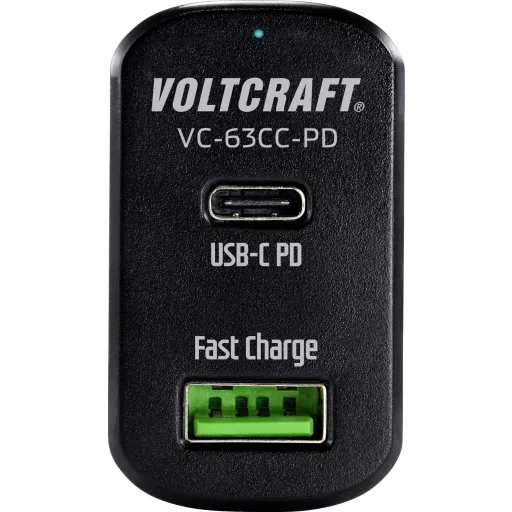 Equipment: A VC-63CC-PD egy nagy teljesítményű autós töltő, maximálisan 63 W kimeneti teljesítménnyel. Van rajta egy USB-A port a hagyományos eszközökhöz és egy USB-C® port a legújabb generációs eszközökhöz.