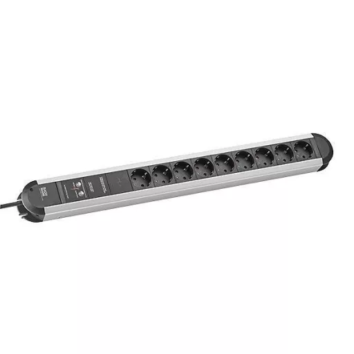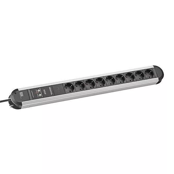 PRIMO elosztó 9x védőérintkezős aljzat kapcsoló nélkül 1x teljes készülékvédő tápkábel 2,0m H05VV-F 3G1,5mm² fekete védőérintkezős szögdugós BACHMANN logóval dobozba csomagolva