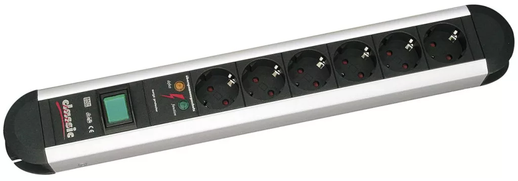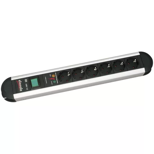 Technical specifications: Alkalmazási terület: Beltér · Anyag: Alumínium · Csatlakozási teljesítmény: 3600 W · Dugaljak száma: 6 · Hálózati csatlakozó típus: Védőérintkezős · Hálózati elosztó jellemzők: Túlfeszültség elleni védelem,Kapcsolóval,Gyermekvédelem · Kivitel: hálózati és frekvencia szűrőkkel · Kábel típus DIN/VDE szerint: H05VV 3G 1,5 mm² · Kábelhossz: 1.75 m · Méret, hossz: 474 mm · Méret, magasság: 54 mm · Méret, szélesség: 71 mm · Működés jelző: Optikai · Szerelési mód: Szerelési lyukak · Szín: Alumínium,Fekete · Üzemi feszültség: 230 V/AC