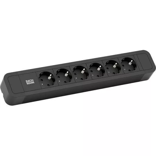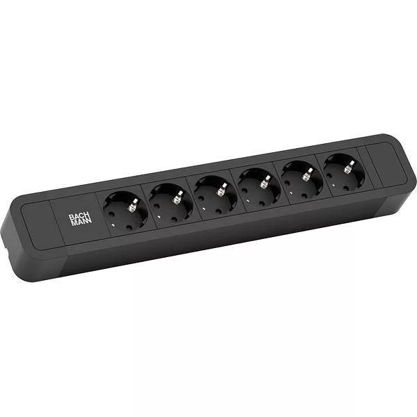 PRIMO 2 elosztó alumínium feketére eloxált Fekete kivitelű végzárók 6x védőérintkezős aljzatok 35° fekete Tápkábel: 2,0 m H05VV-F 3G 1,5 mm² fekete védőérintkezős ferde dugóval, dobozba csomagolva