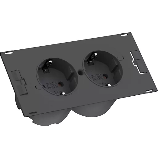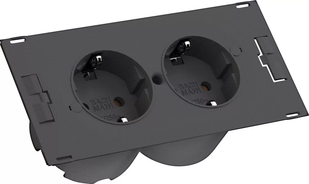 Jellemzők: Univerzálisan alkalmazható villamosítási egység · A tápkábel 2x csatlakozóaljzattal rendelkezik · A későbbi telepítés lehetséges · Rugalmas kábelcsatlakozó.