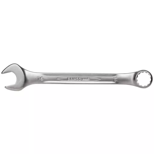 Csavarkulcs, metrikus. ISO 691, ISO 7738, ISO 3318, ISO 1711-1 és DIN 3113. Nyersanyag: jó minőségű acél ötvözet. Az U alakú tengely nagyobb kényelmet nyújt. 15°-os pofa állás vékony fejjel, a jobb hozzáférés érdekében. A kettős hatlapú dinamikus hajtásprofil biztosítja a csavarok és anyák hosszabb élettartamát. A gyűrű oldala 15 ° -os szöget zár be. Nagyobb és kétoldalas méretjelölés az egyszerű azonosítás érdekében. Krómozott mikro-matt kivitel minőségi felülettel. Szabadalmazott U-alakú.