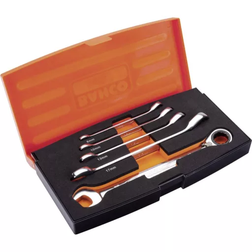 Kilincsműves gyűrűs villáskulcs készlet. Csomagolás: Műanyag tok, habbetéttel.