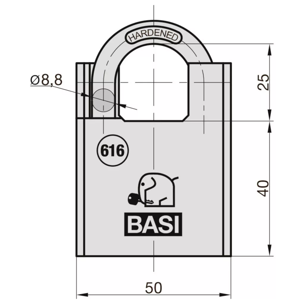 A kiváló minőségű lakat integrált bilincsvédelemmel az egyik legbiztonságosabb lakat. A zár teste bevonatos és tömör acélból készült. A tartó edzett acélból. A beépített bilincsvédelemnek (zárt kengyel) köszönhetően a lakat csekély támadási felületet kínál a feltörési kísérletekhez. A BASI lakat kompakt, robusztus, és a felhasznált anyagoknak köszönhetően beltéri és kültéri használatra is alkalmas. A reteszelés kulcs nélkül, a konzol lenyomásával történik. 3 különböző stílusban/méretben kapható.