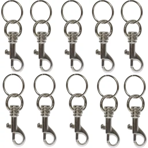 Klasszikus kulcstartó a BASI-tól ezüst akasztóval. Kulcsok kulcscsomóhoz / derékpánthoz való rögzítéséhez. Kulcskarikával - 1 PU = 10 darab polizsákban.