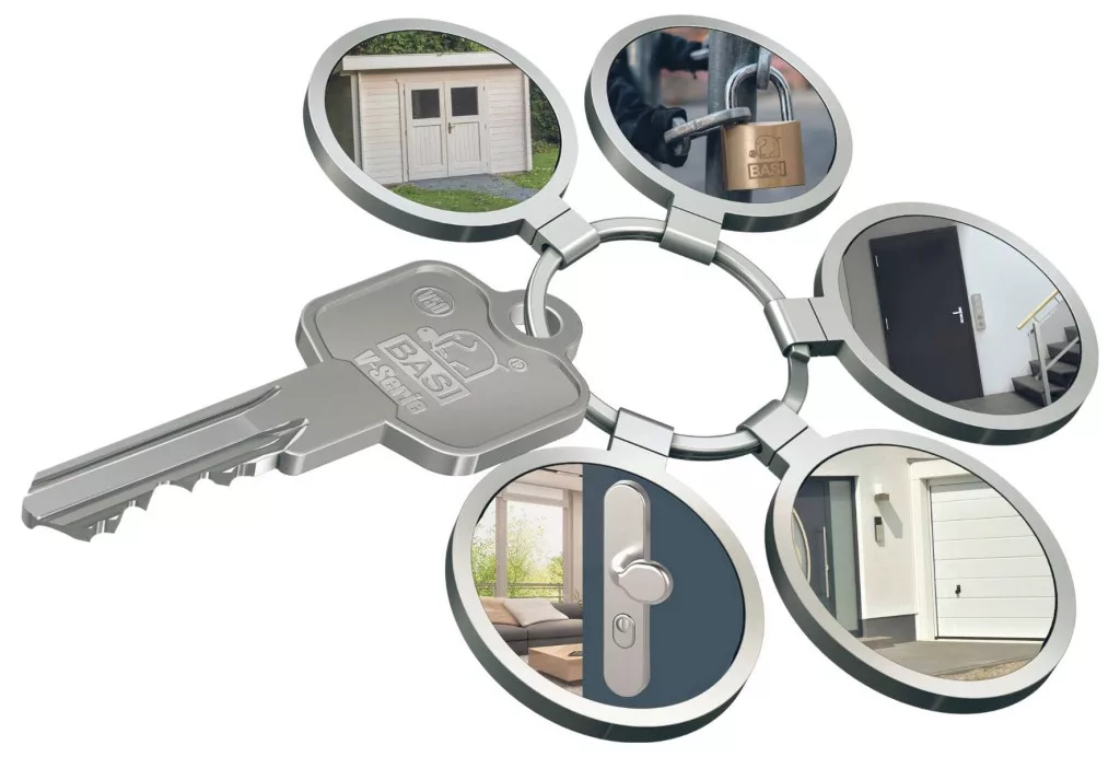 A BASI márkájú tömör lakat profilhengerrel tömör sárgaréz házból és edzett acél kengyelből áll. A zár olyan tárgyakat rögzít, mint a kapuk, ajtók, szekrények, szekrények, fészerek vagy pinceajtók. A biztonsági zár 3 kulccsal jár. Kulcsos egyforma felszerelve - szélesség 50 mm