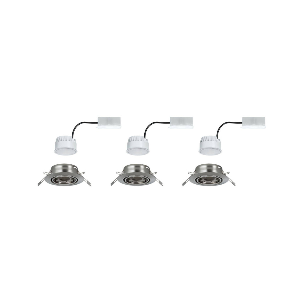 Műszaki adatok: Anyag: Fém · Beépítési mélység: 9 cm · Beépítési átmérő: 6.8 cm · Energiahatékonysági osztály (A++ - E): LED · Foglalat: LED · Fényforrás típus: LED · Fényforrások száma: 3 · Fényszín: 3000 K · Fényáram összesen: 1050 lm · Fényáram/fényforrás (lumen): 350 lm · Kivitel: Kerek · Külső Ø: 9 cm · Lámpa jellemzők: Dönthető · Lámpa típus: Beépíthető lámpa · Sugárzási szög: 100 ° · Szín: Vas (matt) · Teljesítmény: 15 W · Teljesítmény fényforrásonként: 5 W · Védelmi osztály: II · Védelmi típus: IP23 · Üzemi feszültség: 230 V