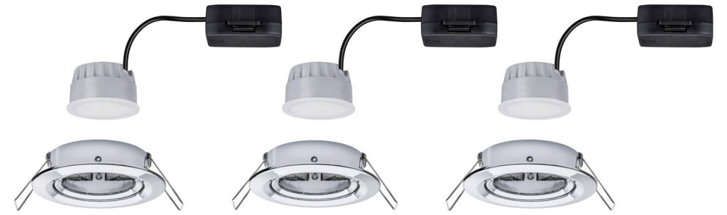 Műszaki adatok: Anyag: Alumínium · Beépítési mélység: 4.5 cm · Beépítési átmérő: 6.8 cm · Energiahatékonysági osztály (A++ - E): A+ · Foglalat: LED · Forgási tartomány, max.: 50 ° · Fényforrás típus: LED · Fényforrások száma: 3 · Fényszín: 2700 K · Fényáram összesen: 1380 lm · Fényáram/fényforrás (lumen): 460 lm · Kivitel: Kerek · Külső Ø: 8.4 cm · Lámpa jellemzők: null,Dönthető,null · Lámpa típus: Beépíthető lámpa · Méret, hossz: 0 m · Méret, szélesség: 0 m · Sugárzási szög: 110 ° · Szín: Króm (fényes) · Teljesítmény: 19.5 W · Teljesítmény fényforrásonként: 6.5 W · Védelmi osztály: II · Védelmi típus: IP23 · Üzemi feszültség: 230 V