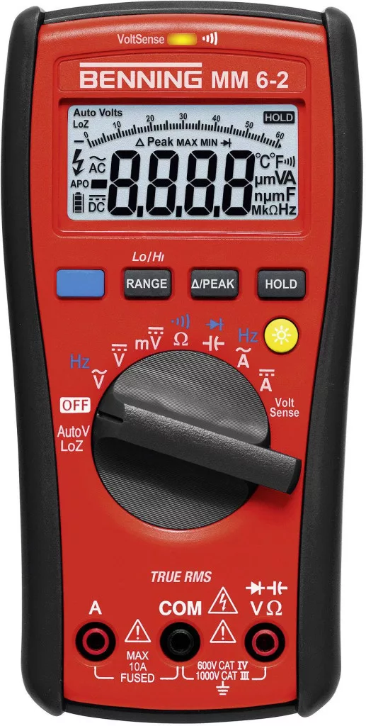 Technical specifications: ATT.LOV.MEASUREMENT-CATEGORY: CAT III 1000 V,CAT IV 600 V · AC resistance: 10 MOhm · DC resistance: 10 MOhm · Product net height: 43 mm · Product net length: 156 mm · Product net weight: 290 g · Product net width: 74 mm · Type (manufacturer type): BENNING MM 6-2 + SDT 1