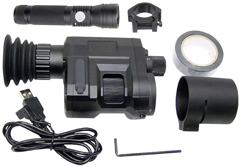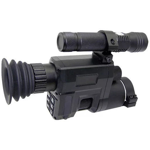 Clip-on digitális éjjellátó készülék, kiegészítő eszköz Egyszerre használható megfigyelő eszközként (monokulár) és éjjellátó kiegészítő eszközként (kiegészítő eszköz) távcsőhöz, céltávcsőhöz vagy hasonlókhoz. A kiegészítő infrasugárzó (IR-LED) (beleértve) akár 250 méteres rálátást tesz lehetővé sötétben, az infravörös megvilágító működtetése 18650 Li-Ion akkumulátorral (3,6V) beleértve.