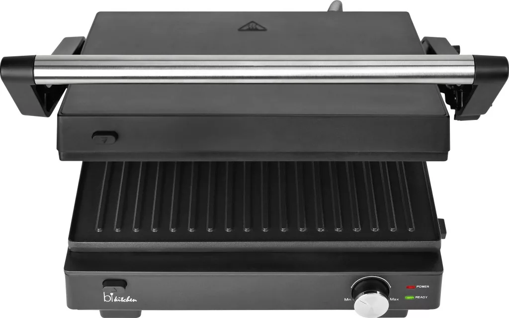 BiKitchen grill 200 Kontakt grill Elektromos Visszajelző lámpa,Összehajtható,fokozatmentes hőmérséklet szabályozó Fekete
