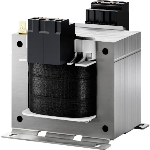 Kis bekapcsolási áramú szabályozó-, biztonsági- ill. leválasztó transzformátor szorítós húzórugós csatlakozóval és kombi talplemezzel csavaros és hordsínes szereléshez (TS-35 sínek, 250 VA-ig), DIN 50022.