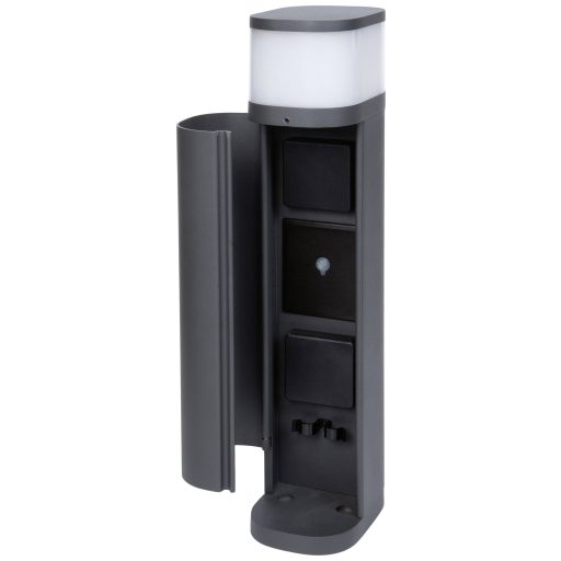 Műszaki adatok: 2021-es energiahatékonysági osztályok: n.rel. · Anyag: Alumínium · Foglalat: G9 · Fényszín: 2700 K · Fényszín (fényforrás): Melegfehér · Fényáram összesen: 470 lm · Gyártói szín: Antracit · Helyiség: Hangulatos kertvilágítás · Lámpa jellemzők: Beépített dugalj, Kapcsolóval, Appal vezérelhető, Hangvezérléssel, Időzítő funkció · Méret, magasság: 45 cm · Méret, mélység: 13.5 cm · Méret, szélesség: 9.5 cm · Teljesítmény: 28 W · Védelmi osztály: IP44 · Védelmi típus: IP44
