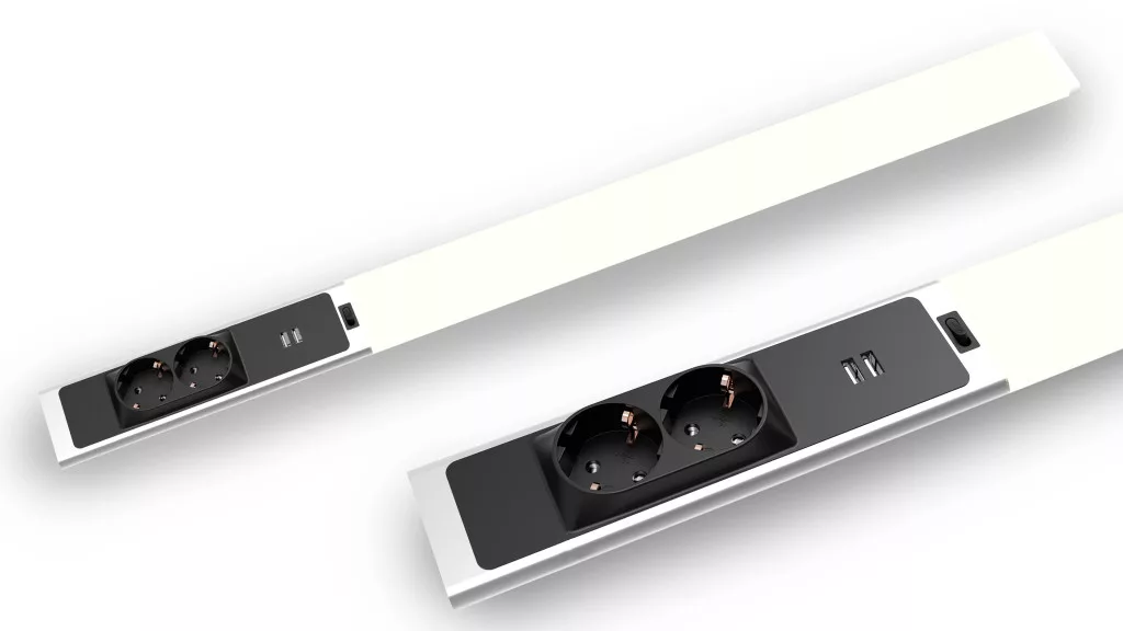 LED-es konyhai szekrény alatti lámpa 2 integrált aljzattal, 2 USB-A porttal és külön be-/kikapcsolóval.
