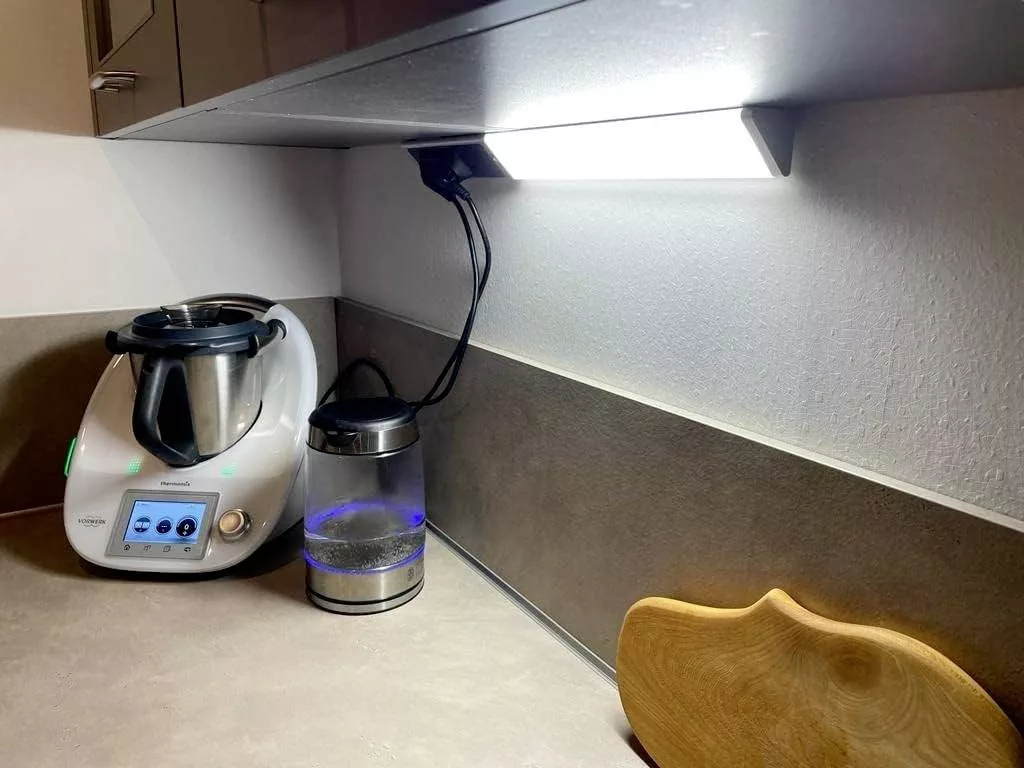 Szekrény alatti lámpánkkal világosabbá és hívogatóbbá teheti konyháját. A kiegészítő fény és praktikus aljzatok javítják a munkafolyamatot a konyhában.