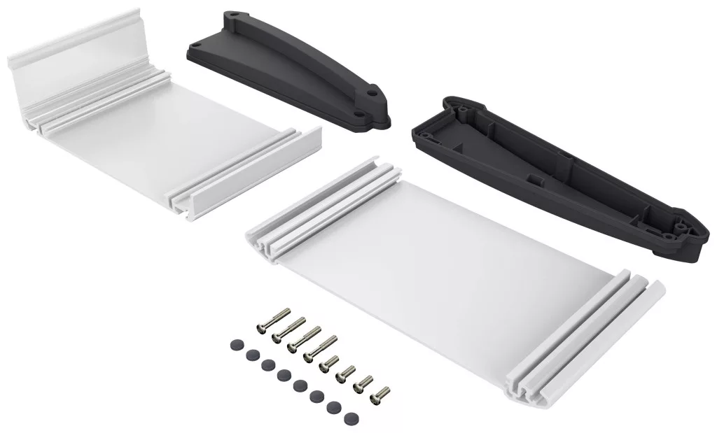 A profilok hornyokkal és csavaros csatornákkal is rendelkeznek, vezetékkártyák és szerelőlapok rögzítéséhez. A felületen a fóliabillentyűzet számára egy süllyesztett részt is kialakítottak.
