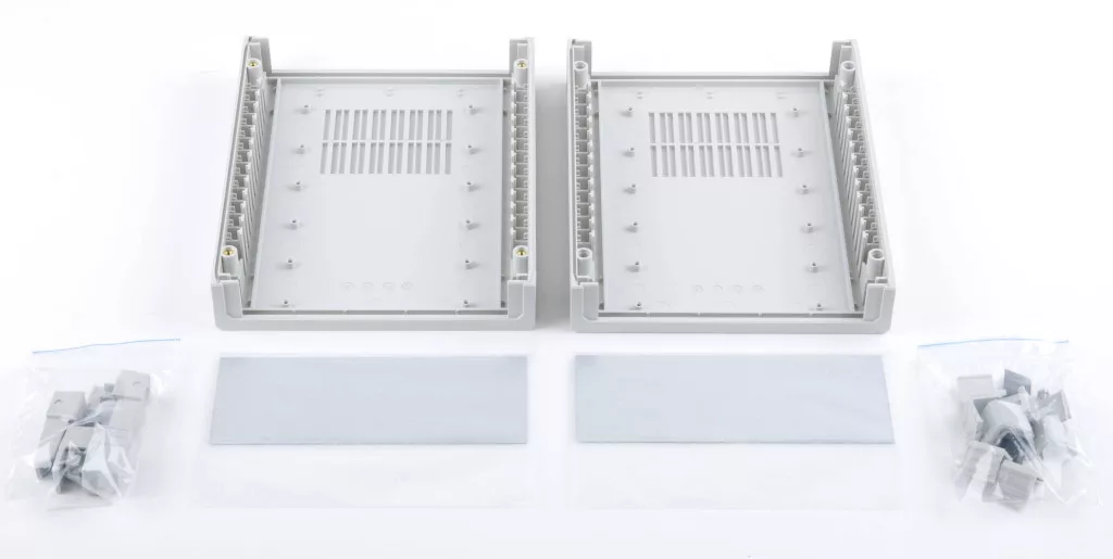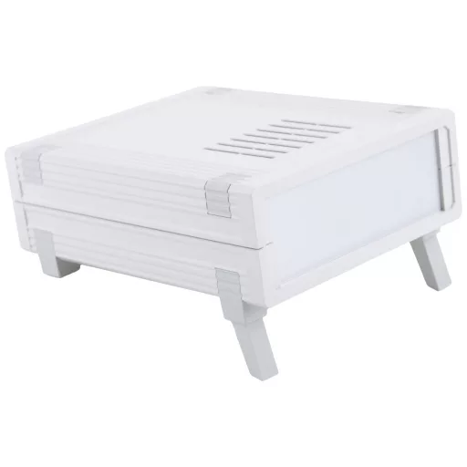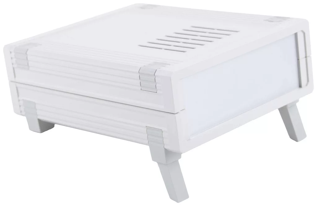 A klasszikus asztali házrendszer két ABS-ből készült műanyag félhéjból és alumínium előlapokból áll. A ház minden alkatrésze kiváló minőségű sárgaréz menetes betétekkel van összecsavarva. Így garantált a tartósan megbízható nyitás és zárás. Nyomtatott áramköri lapokhoz (vízszintes és függőleges) tartók széles választéka kapható a belső térben.