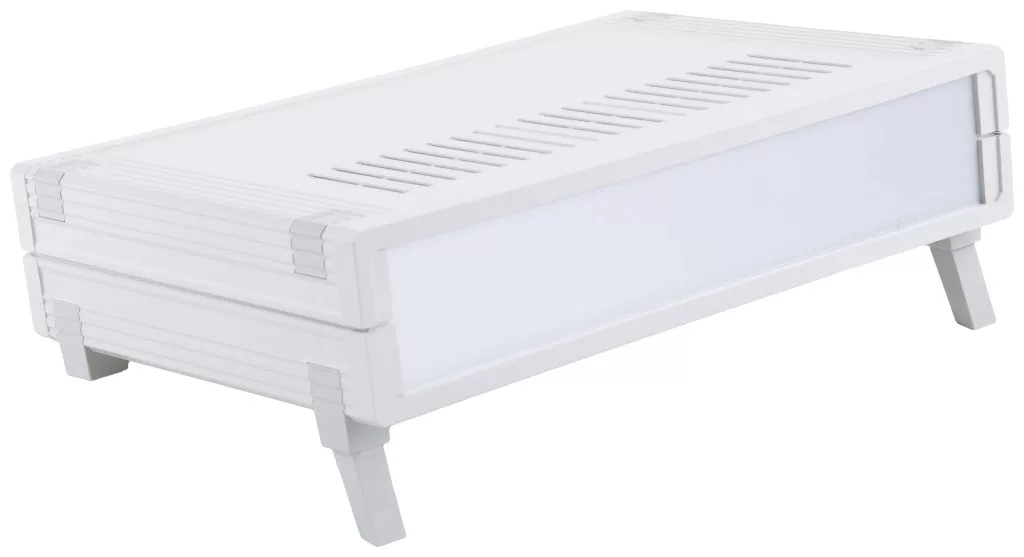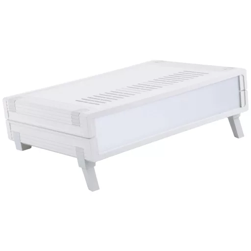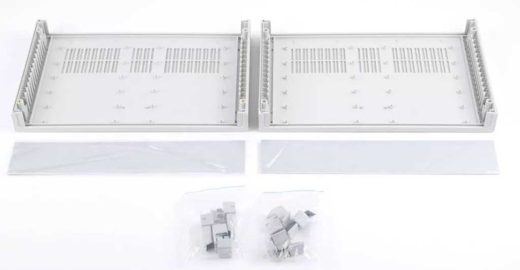 A klasszikus asztali házrendszer két ABS-ből készült műanyag félhéjból és alumínium előlapokból áll. A ház minden alkatrésze kiváló minőségű sárgaréz menetes betétekkel van összecsavarva. Így garantált a tartósan megbízható nyitás és zárás. Nyomtatott áramköri lapokhoz (vízszintes és függőleges) tartók széles választéka elérhető a belső térben.