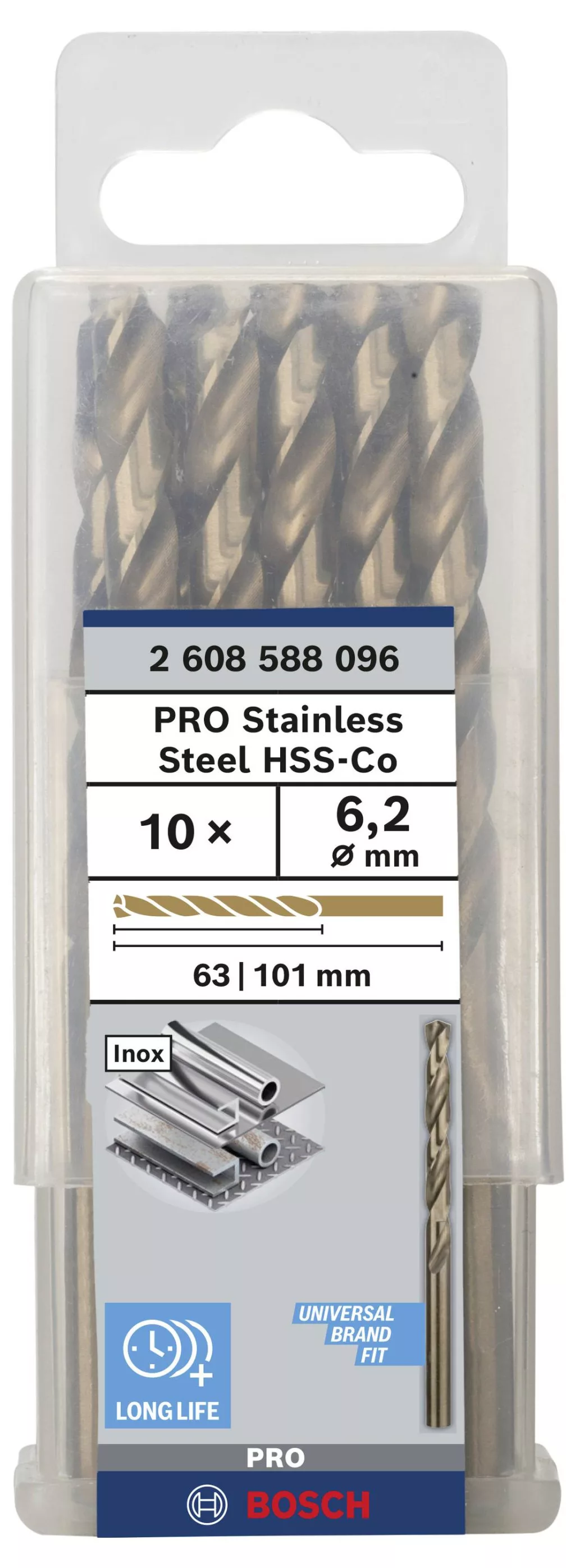 Fémfúró HSS-Co, DIN 338, 6,2 x 63 x 101 mm, 10 csomag