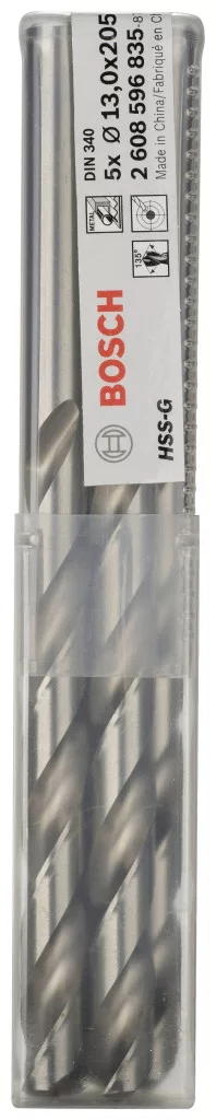 Műszaki adatok: Anyag (fúró): HSS · Anyag alkalmasság: Fém · Csúcsszög: 135 ° · Furat átmérő tolerancia: h 8 · Mennyiség megadása: 5 részes · Munkahossz: 134 mm · Szár átmérő: 13 mm · Teljes hossz: 205 mm