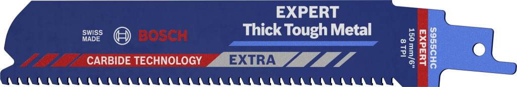 Hält bis zu 100-mal länger als ein Bimetall-Blatt in robustem Material - Das Schneiden durch dickes Metall wie Stahlprofile oder schwere Gussrohre gehört wahrscheinlich nicht zu deinen Lieblingsarbeiten. Sanitärinstallateure, Renovierer und Abbrucharbeiter wissen alle, dass für diese harte Arbeit selbst mit einer Hochleistungs-Säbelsäge Schweiß und Muskelkraft erforderlich sind. Das Expert ‘Thick Tough Metal’ schneidet nicht nur dickes Metall, es bietet auch eine außerordentlich hohe Lebensdauer bei diesen härtesten Einsätzen. Durch die Bosch Carbide Technology hat das Blatt eine herausragende Lebensdauer. Die aus härtestem Metall bestehenden Zähne werden auf ein besonders robustes, breites Blatt aus Stahl mit hoher Materialstärke geschweißt – perfekt für gerade Schnitte und Widerstandsfähigkeit. Profis, die noch nie ein Bosch Carbide-Blatt verwendet haben, werden erstaunt sein, was das Bosch Expert ‘Thick Tough Metal’ Säbelsägeblatt alles aushält. Mit dem Bosch Expert ‘Thick Tough Metal’ Säbelsägeblatt findest du vielleicht sogar Gefallen am Schneiden von dickem Stahl und Gusseisen. Passend auf alle Säbelsägen mit S-Schaft.