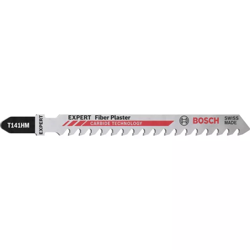 Olyan anyagokat vág le, ahol más kések meghibásodnak - A kemény anyagokat robusztus kirakós pengével kell megmunkálni, de a vágásoknak még tisztának kell lenniük. A kopott pengék nem teszik jól a munkát. Ezért az Expert „Fiber Gipsz” tartós és kiváló minőségű. Keményfém fogai a legdörzsöltebb építőanyagokat, például a cementszálas lemezeket, a gipszkartonokat és az üvegszállal erősített műanyagokat vágták le. A maximális termelékenységet is biztosítják. A Bosch Expert 'Fiber Plaster' szúrófűrészlap minőségét és rendkívüli élettartamát a Bosch Carbide Technology révén érik el. A legkeményebb fémből őrölt egyes fogakat a legmodernebb gyártási eljárásokkal hegesztik a pengére. A Bosch Expert 'Fiber Plaster' szúrófűrészlapot a leginkább koptató anyagok vágására tervezték. A penge kétféle hosszúságban kapható: a T141HM a maximális irányítás érdekében, a hosszabb T341HM pedig a vastagabb munkadarabok számára. Alkalmas minden T-szárú fűrészhez.