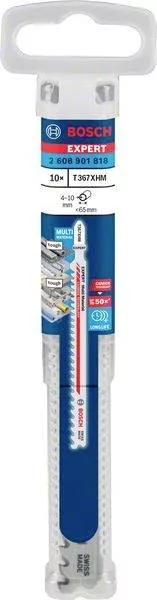 Kiemelkedő élettartam a legkülönfélébb építőanyagokban! Progresszív fogosztás bármilyen vastagságú anyag vágásához. Szüksége van egy lapra, amelyre támaszkodhat. Egy kirakós fűrészlap, amely képes kezelni a beágyazott fémrészekkel ellátott fűrészárut. Vagy farostlemezzel. Vagy akár kemény csavarokkal. Az EXPERT ' Multi Material' könnyen használható többféle anyaghoz és vágáshoz még akkor is, ha a többi szúrófűrészlap már elhasználódott. A Bosch EXPERT „Multi Material” szúrófűrészlapja a legkeményebb faanyagokat is képes vágni, beágyazott fémmel és más szívós építőanyagokkal. Erre a lapra támaszkodhat. Kiemelkedő élettartam a Bosch keményfém technológiának köszönhetően.