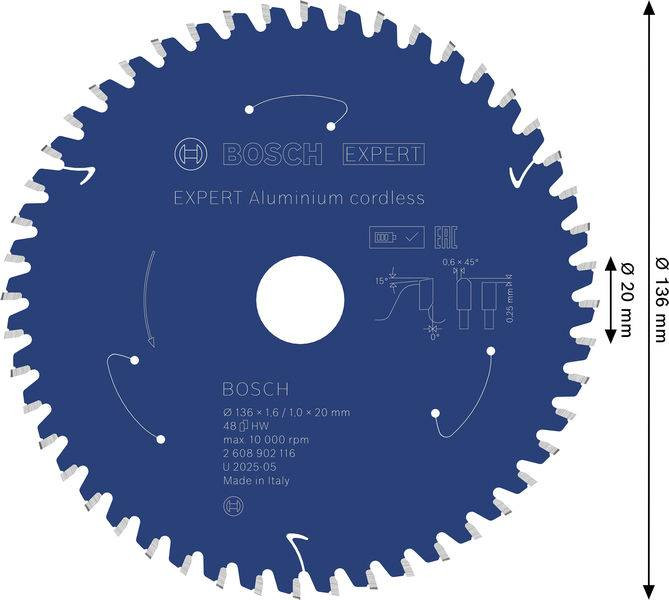 EXPERT alumínium körfűrészlap, 136x20 mm, Z48