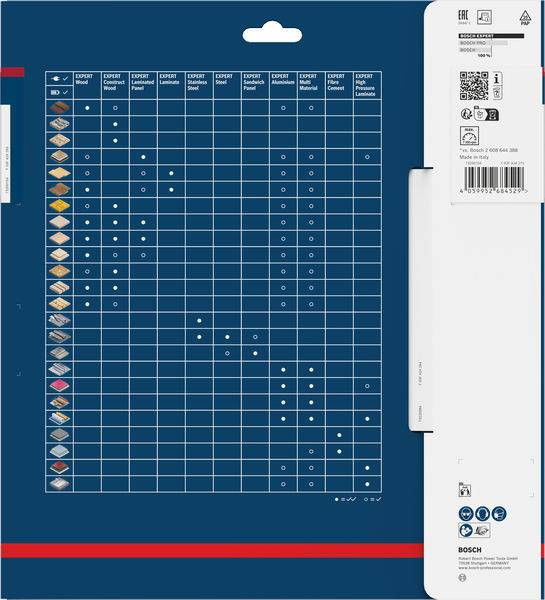 Hosszú élettartam a nagynyomású laminált panelekben! Kiegészítő bevonat a fokozott teljesítmény és a hosszabb tartósság érdekében. A nagynyomású laminált anyagot gyakran használják az építőiparban és a bútorasztalos-gyártásban tartóssága miatt. A felületek azonban nagyon károsak lehetnek a körfűrészlapra. EXPERT nagynyomású laminált körfűrészlapunkkal könnyedén, hatékonyan és ismételten vághat nagynyomású laminált paneleket. Az EXPERT nagynyomású laminátum finom fogai élesen köszörültek és Bosch keményfém technológiával készülnek. Ezáltal nagyon tartós, és tiszta, precíz vágásokat tesz lehetővé. A hőképződés és a korrózió elleni védelem érdekében egy további bevonatot vittünk fel. Kivételesen robusztus a Bosch keményfém technológiának köszönhetően